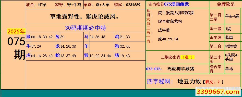 主题 :075期:小鱼儿30码期期中+幽默猜测 |