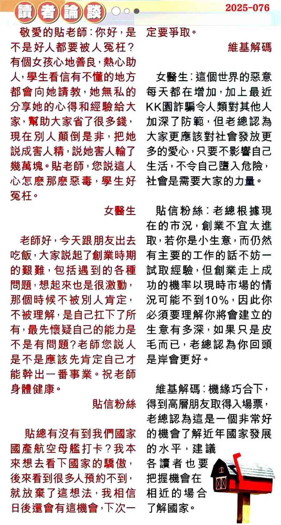 076期:彩民推荐贴信读者论坛
