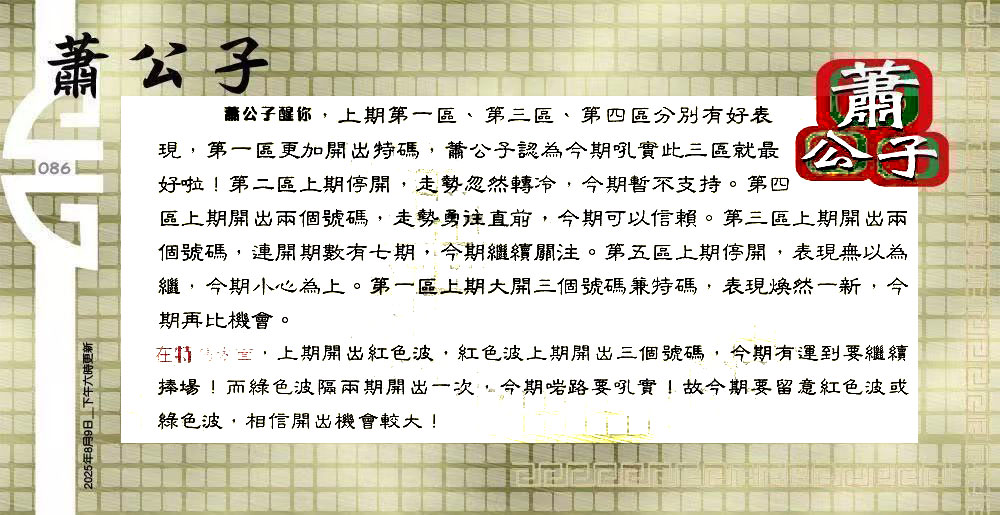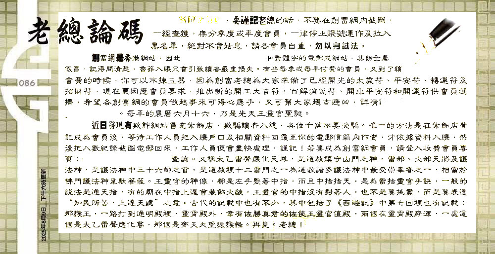 主题 :086期:六合皇金句/老总论码/萧公子/林大师/五行夺码/老总信箱截 |
