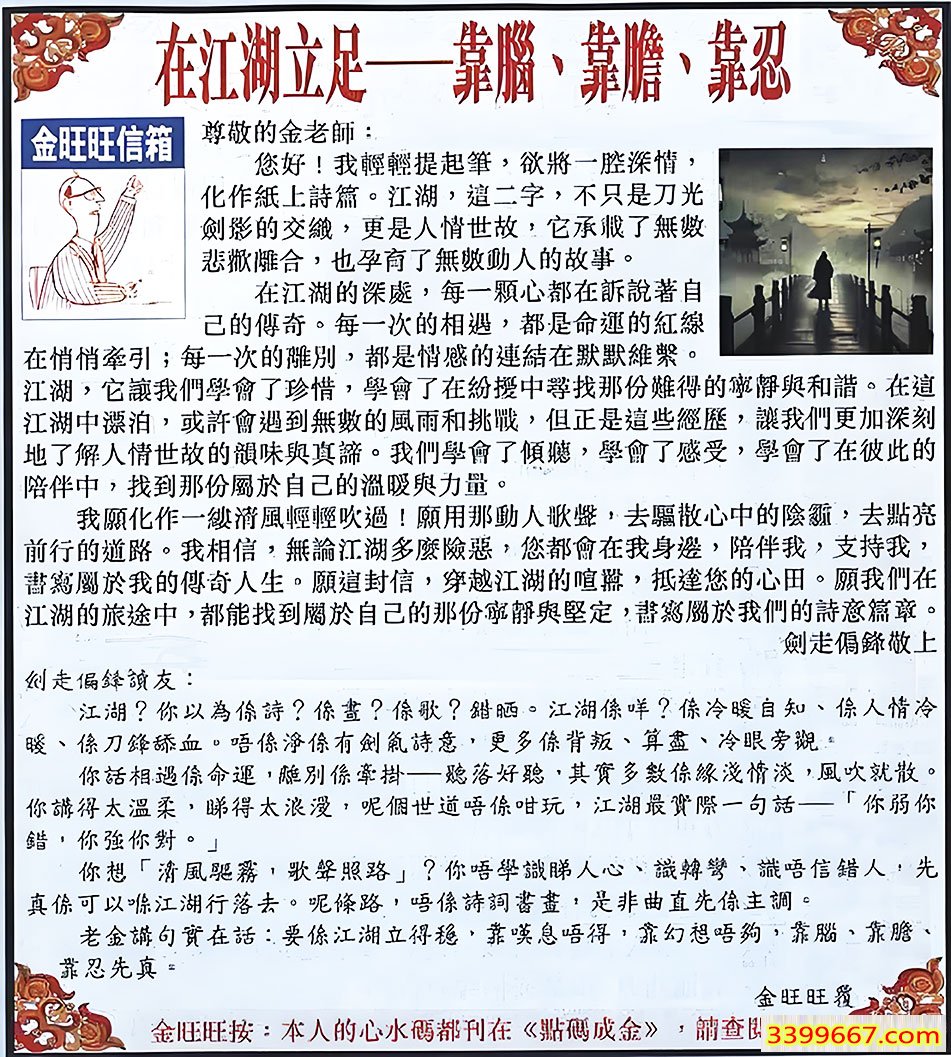 主题 :096期:金旺旺信箱彩民推荐→→《在江湖立足——靠腦、靠膽、靠 |