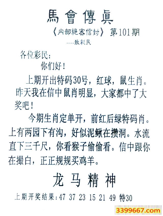 主题 :101期:首发推荐:≮馬會傳眞≯→(香港正版) |