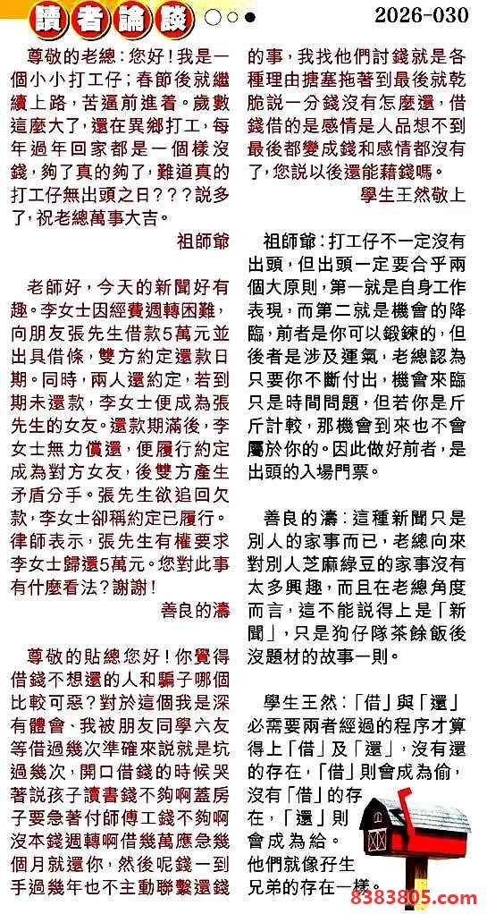 主题 : 030期:彩民推荐贴信读者论坛