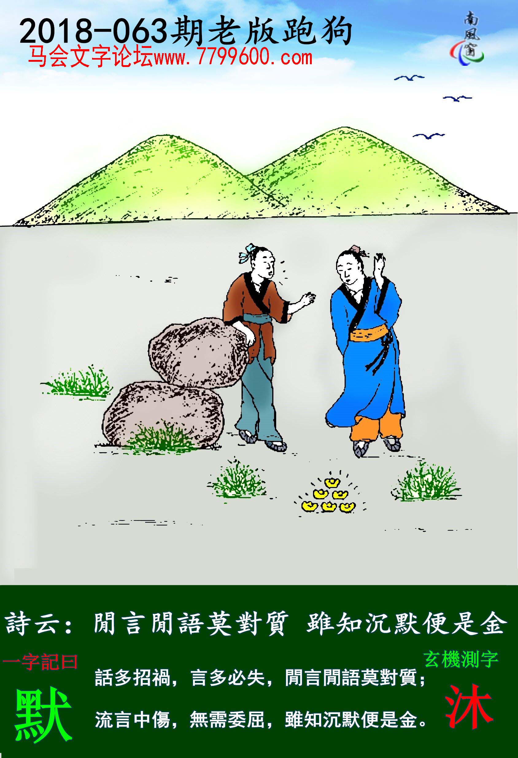 063期老版跑狗一字記之曰:【默】