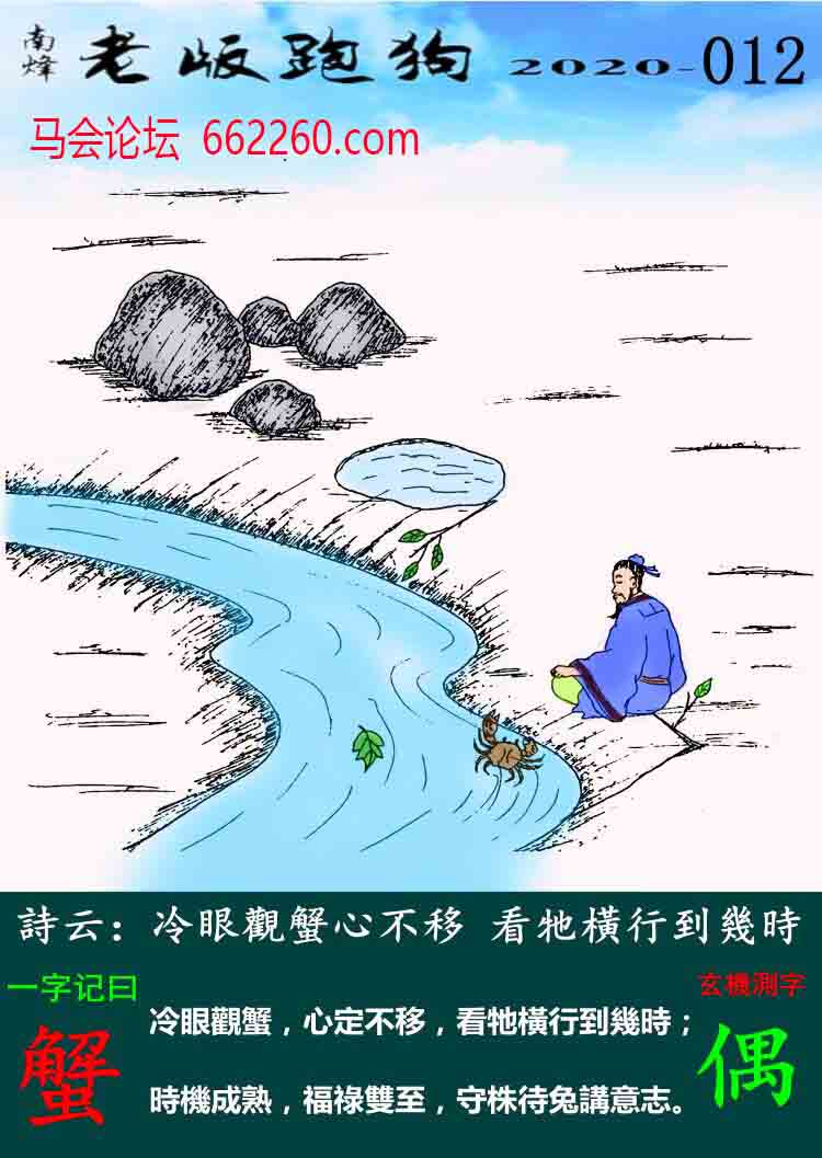 主题 : 012期老版跑狗一字記之曰:【蟹】玄機測字:《偶》