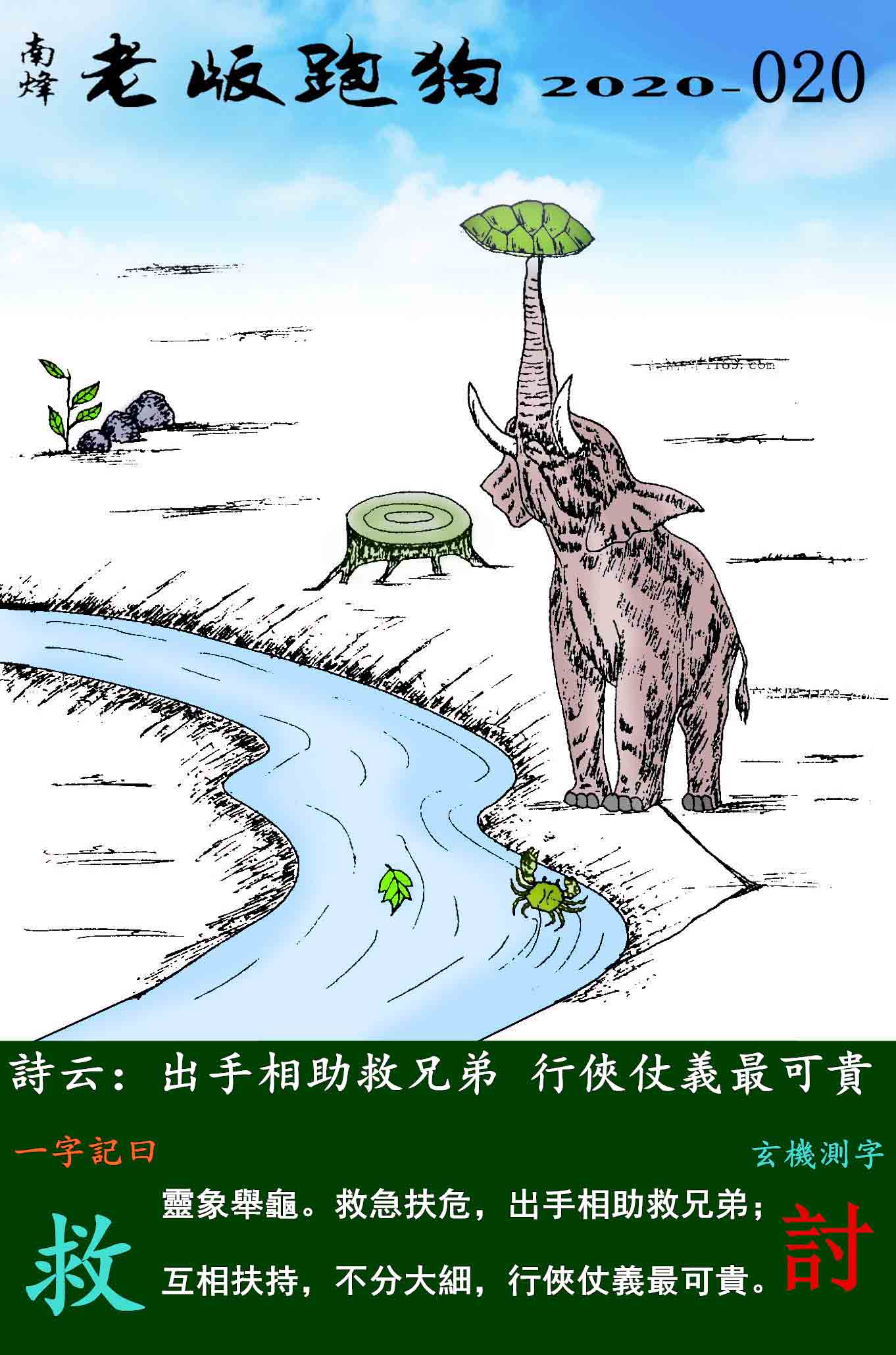 020期老版跑狗一字記之曰:【救】玄機測字:《討》
