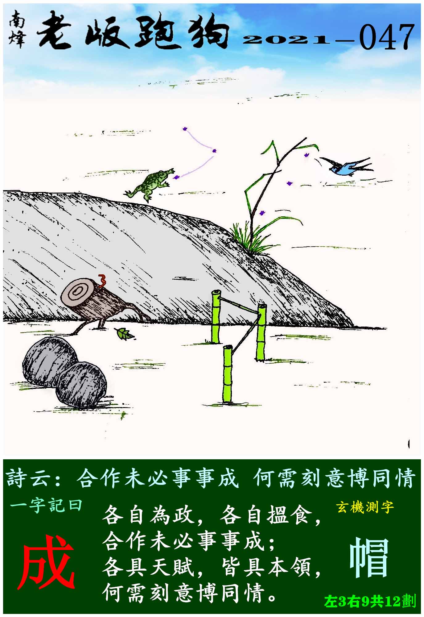 047期老版跑狗一字記之曰:【成】