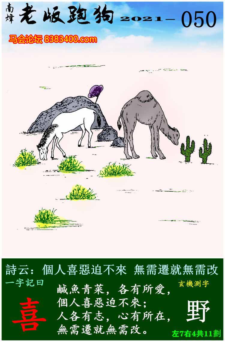 050期老版跑狗一字記之曰:【喜】