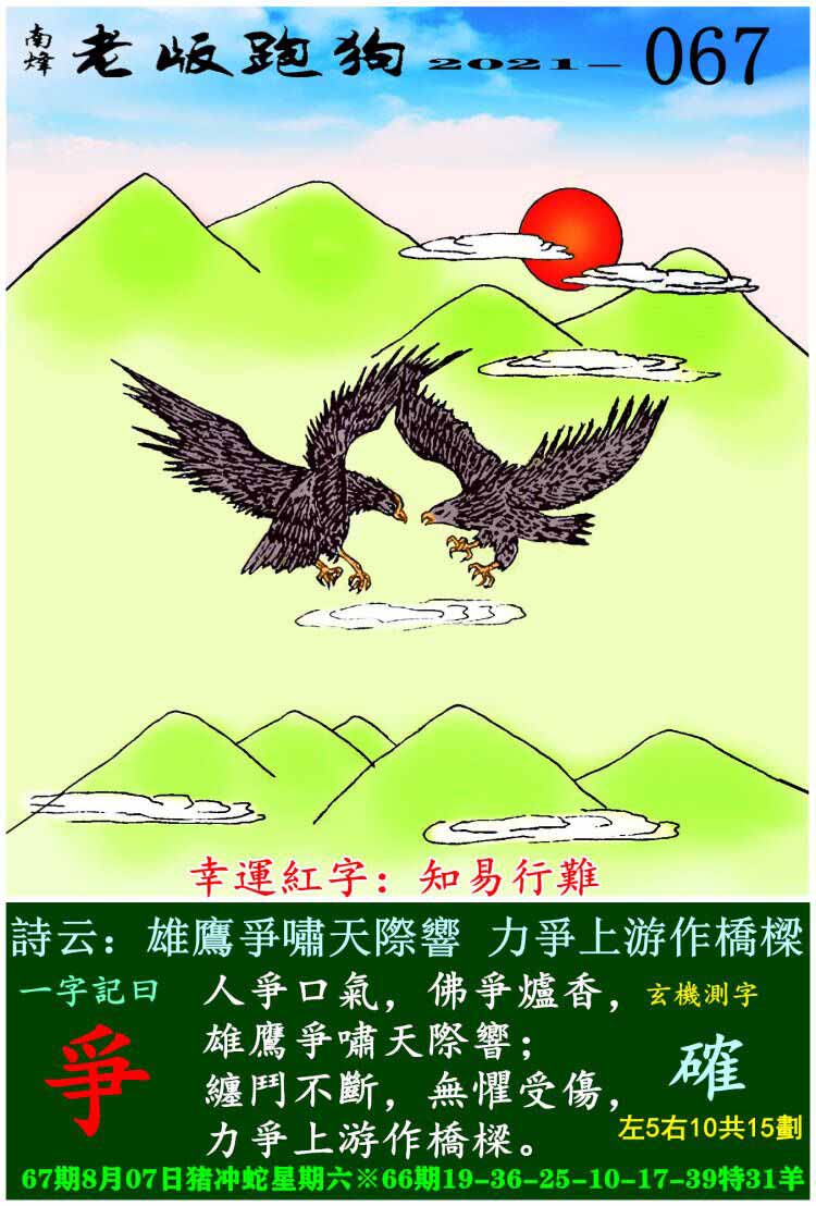 067期老版跑狗一字記之曰:【爭】