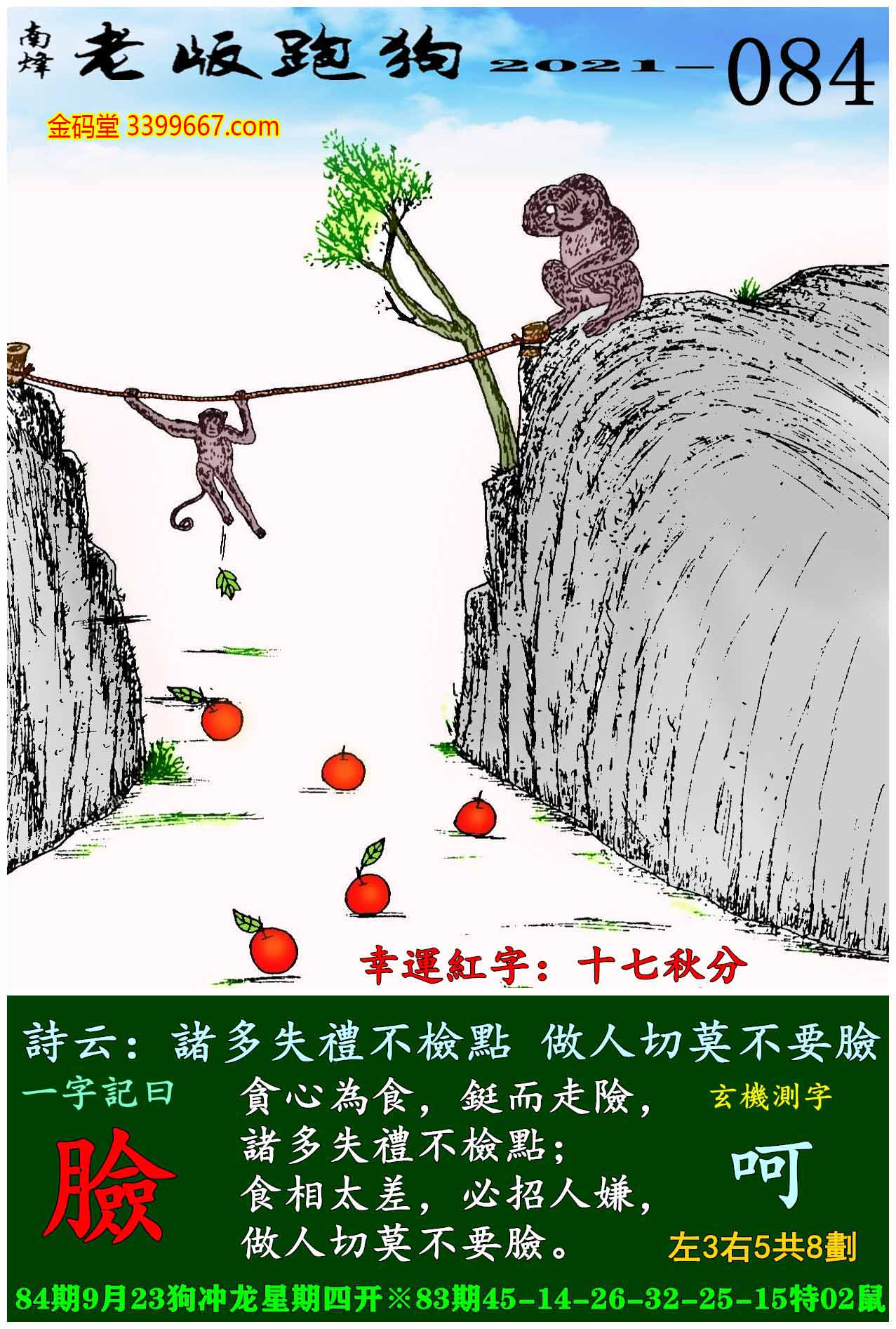 084期老版跑狗一字記之曰:【臉】