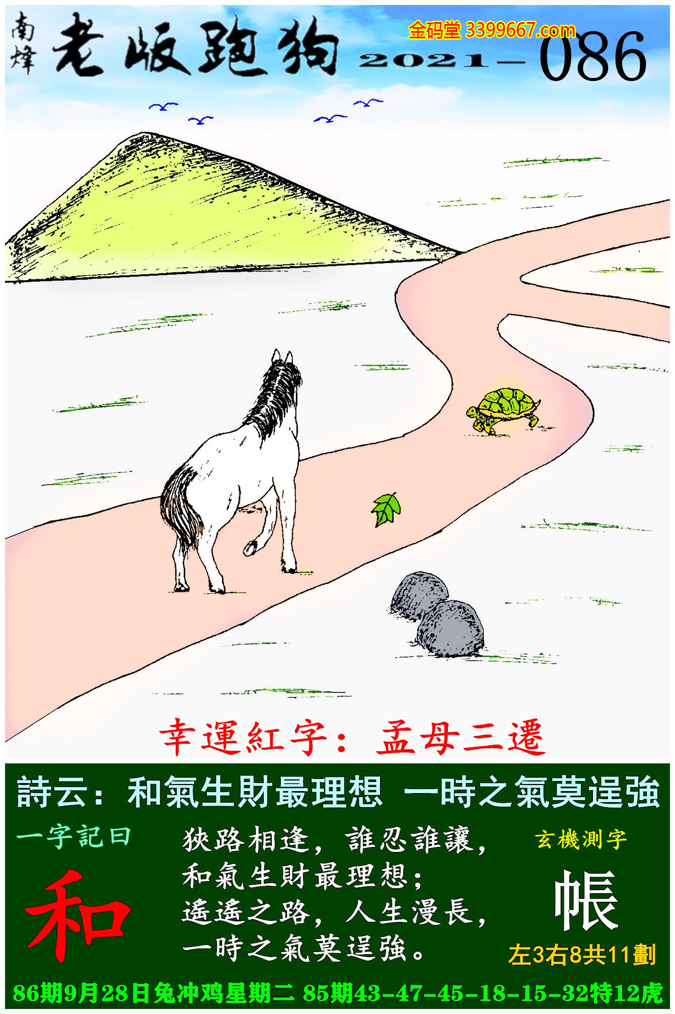 086期老版跑狗一字記之曰:【和】