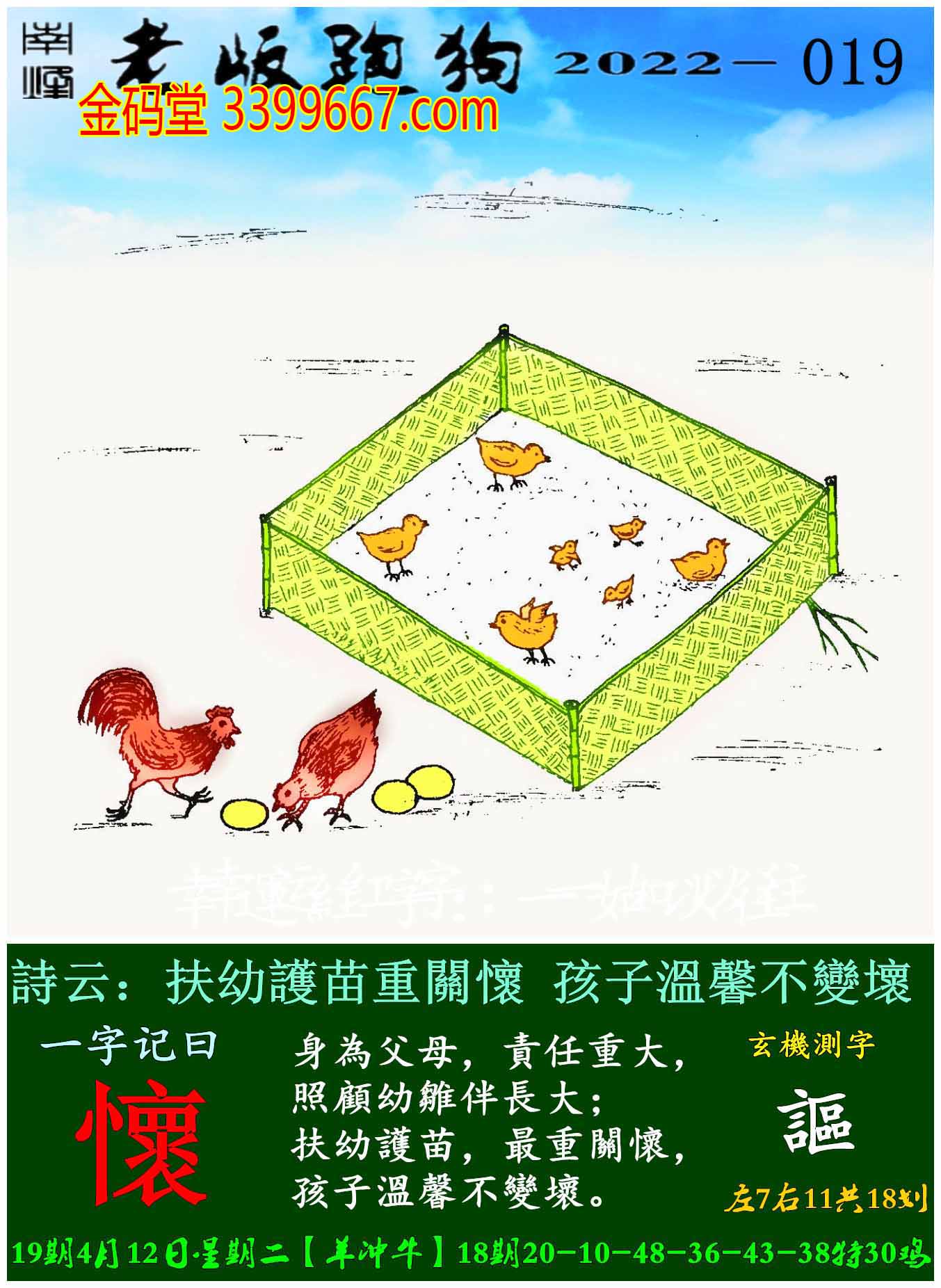 019期老版跑狗一字記之曰:【謳】玄機測字:《壞》