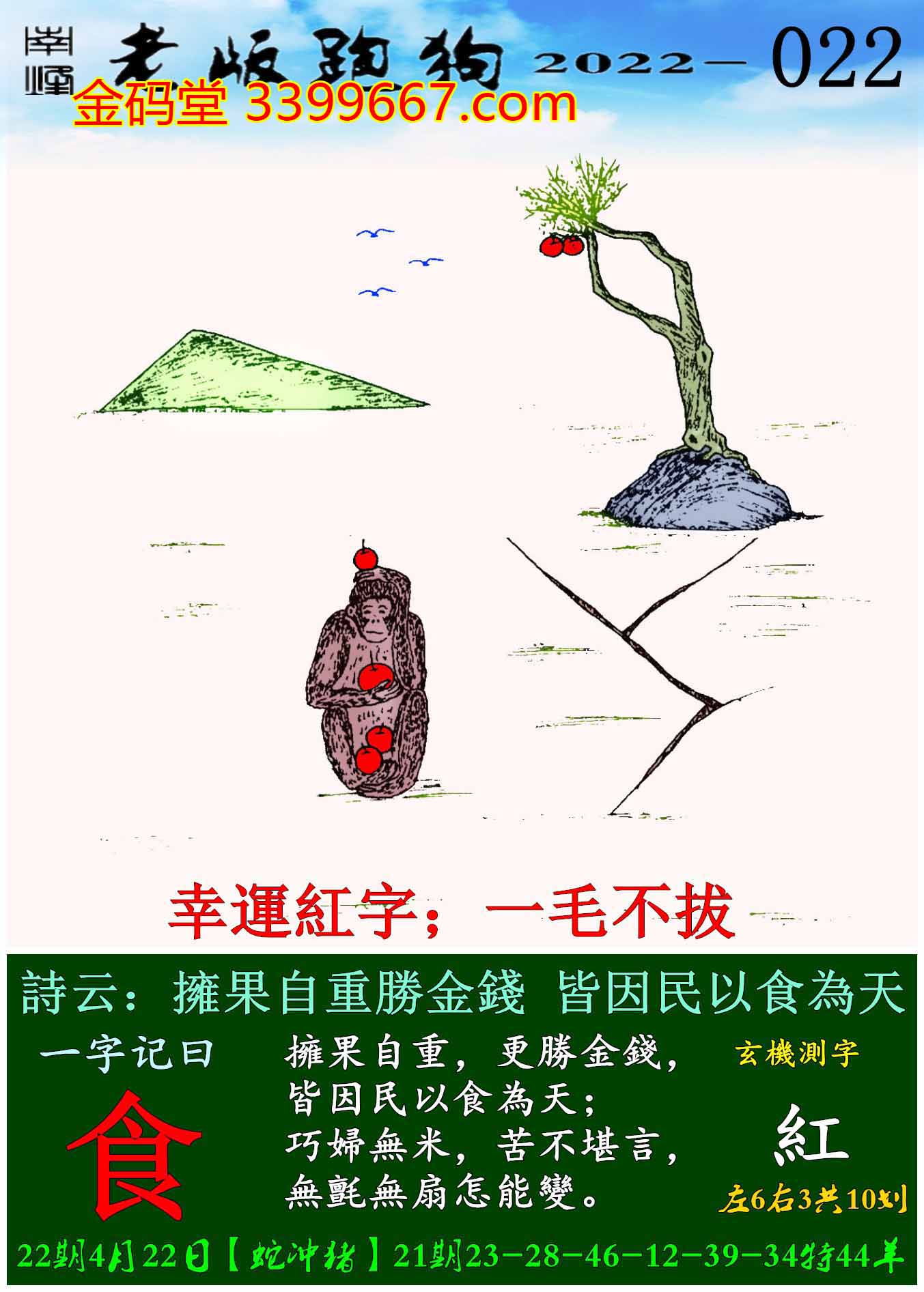 主题 : 022期老版跑狗一字記之曰:【食】玄機測字:《紅》