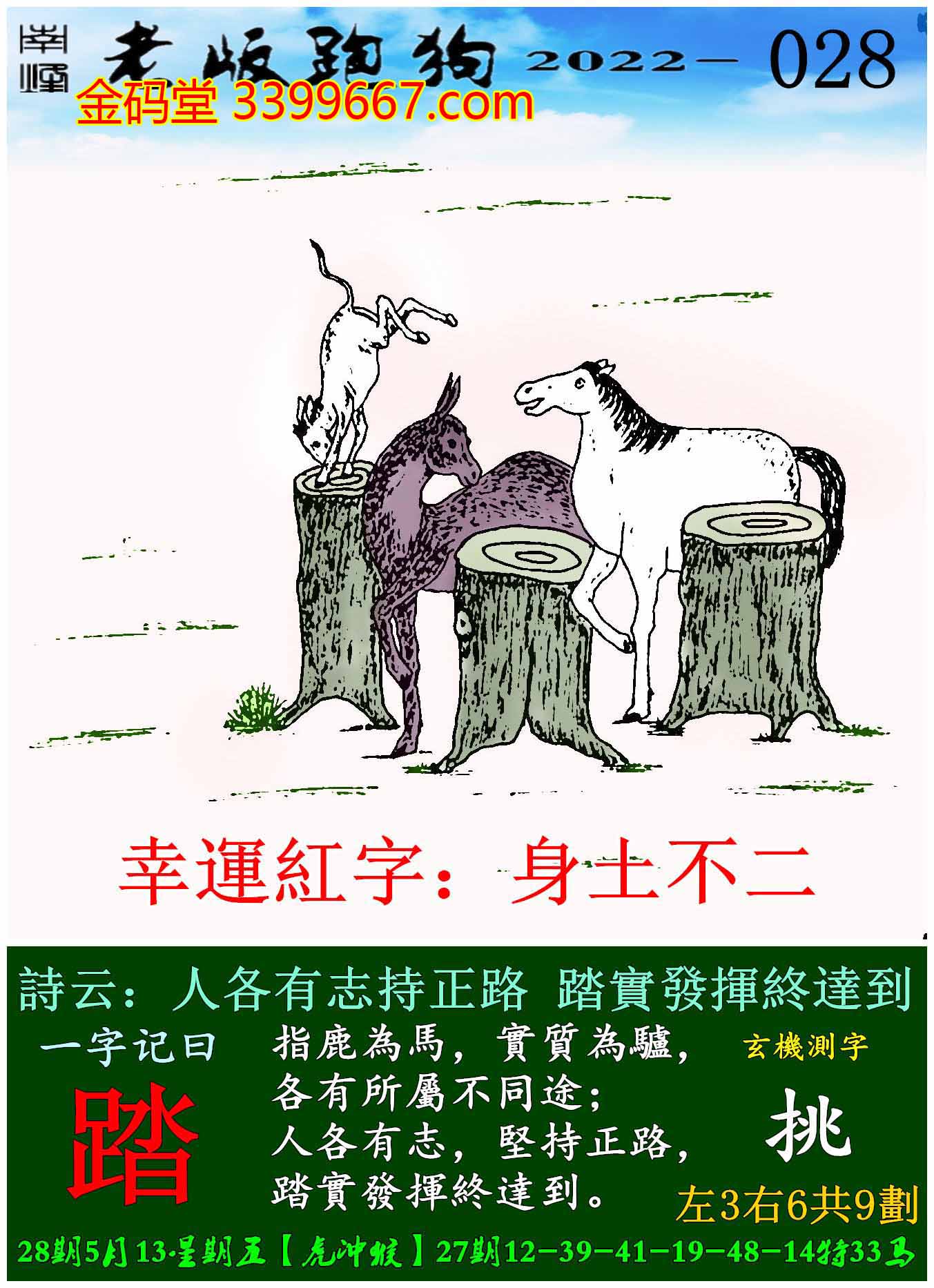 028期老版跑狗一字記之曰:【踏】