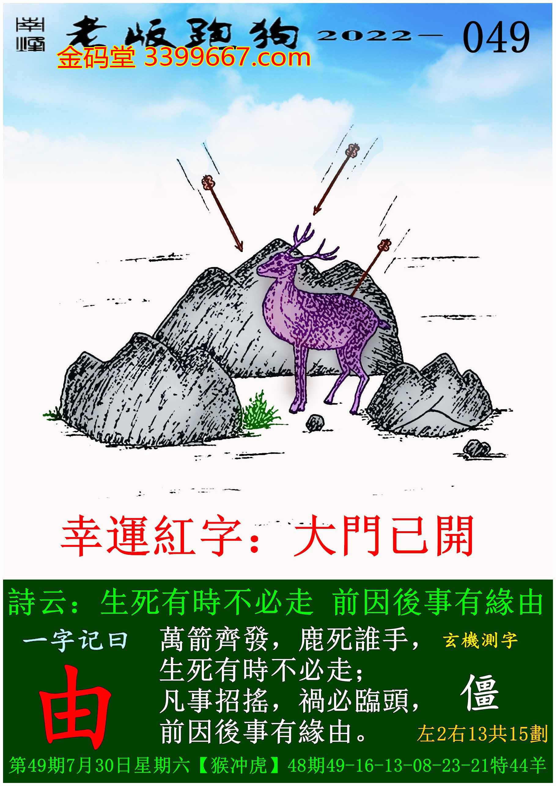 主题 : 049期老版跑狗一字記之曰:【由】玄機測字:《僵》