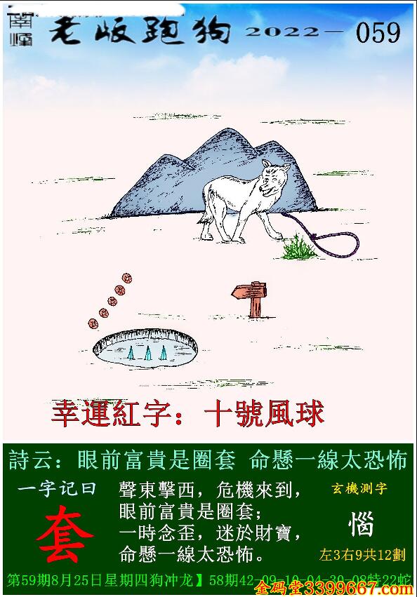 主题 : 059期老版跑狗一字記之曰:【套】玄機測字:《惱》