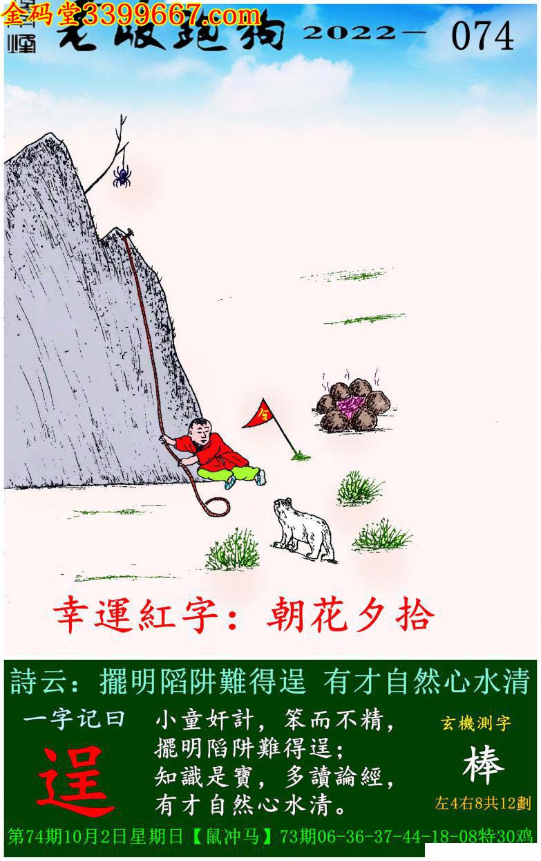 主题 : 074期老版跑狗一字記之曰:【逞】玄機測字:《棒》