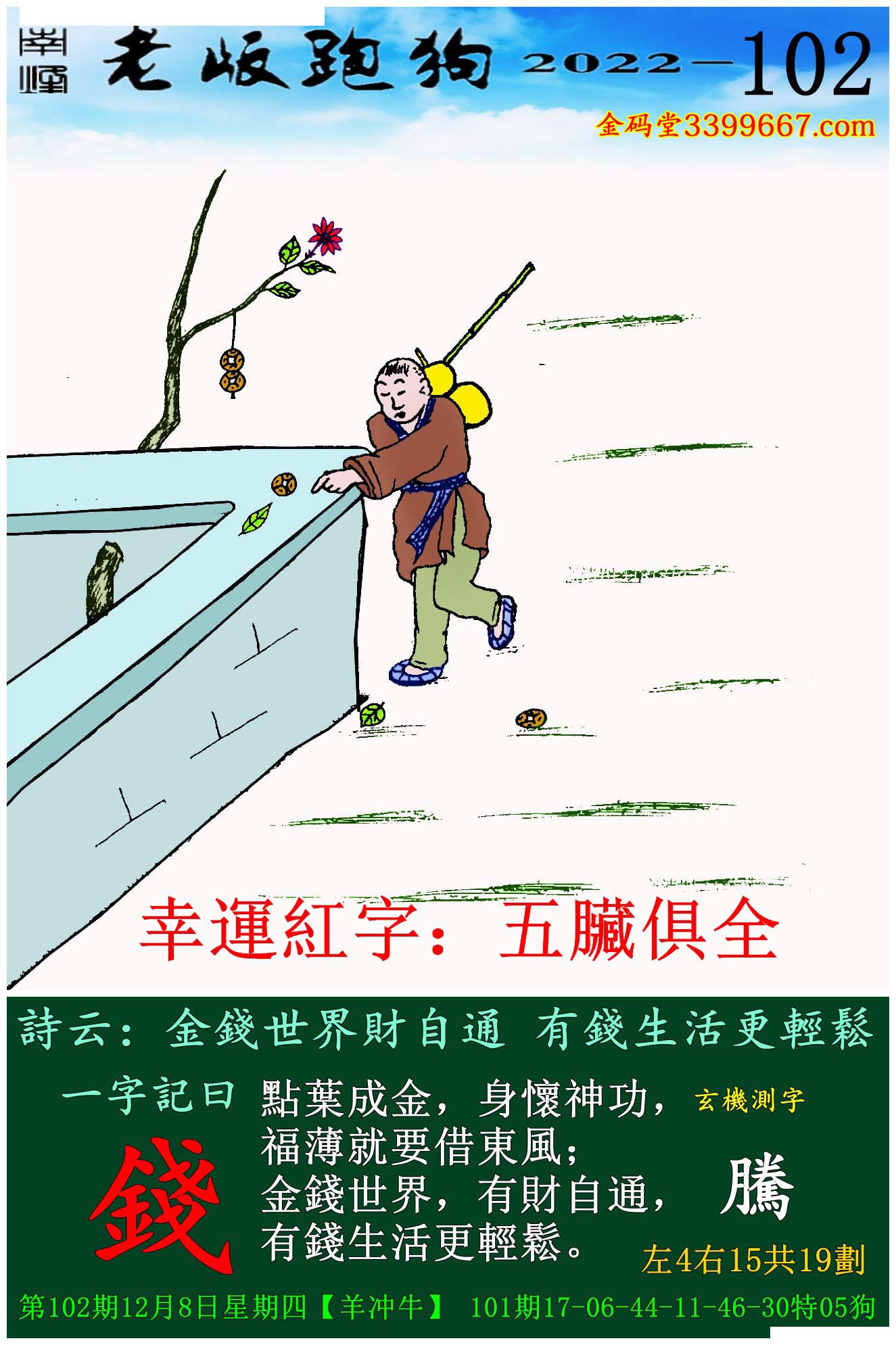 102期老版跑狗一字記之曰:【錢】