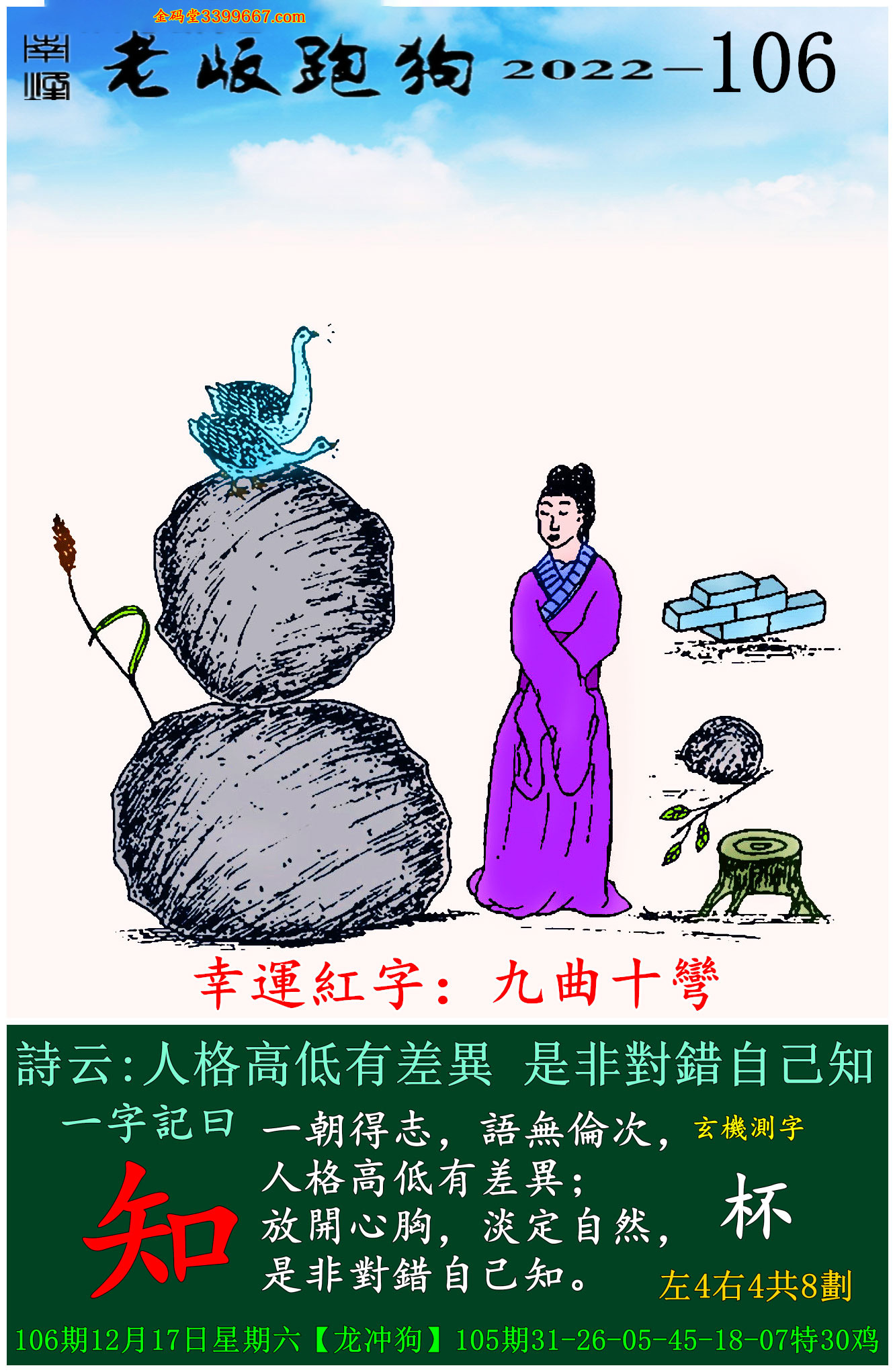 主题 : 106期老版跑狗一字記之曰:【知】玄機測字:《杯》
