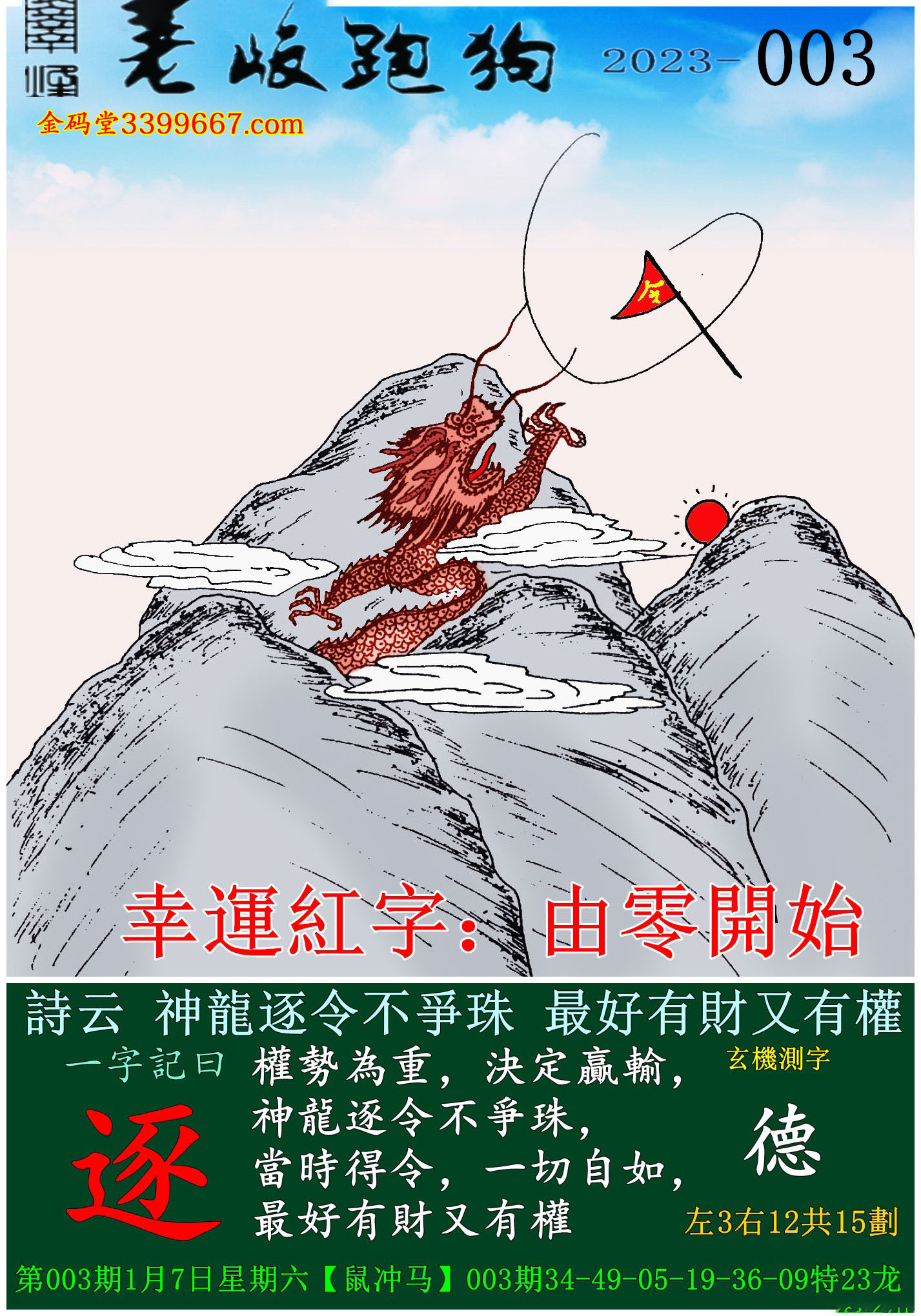 003期老版跑狗一字記之曰:【逐】玄機測字:《德》