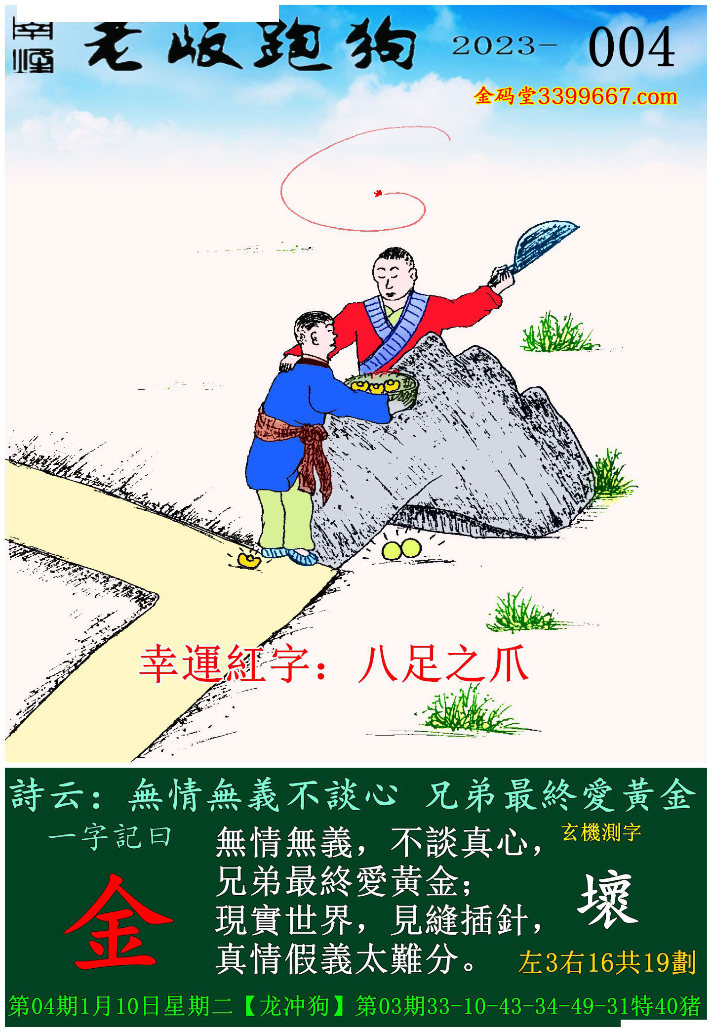 主题 : 004期老版跑狗一字記之曰:【金】玄機測字:《壞》