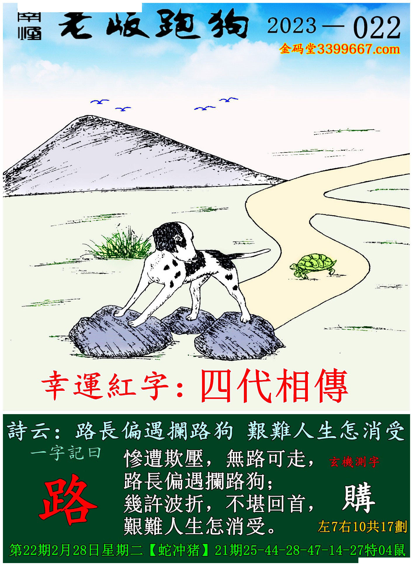 主题 : 022期老版跑狗一字記之曰:【路】玄機測字:《購》