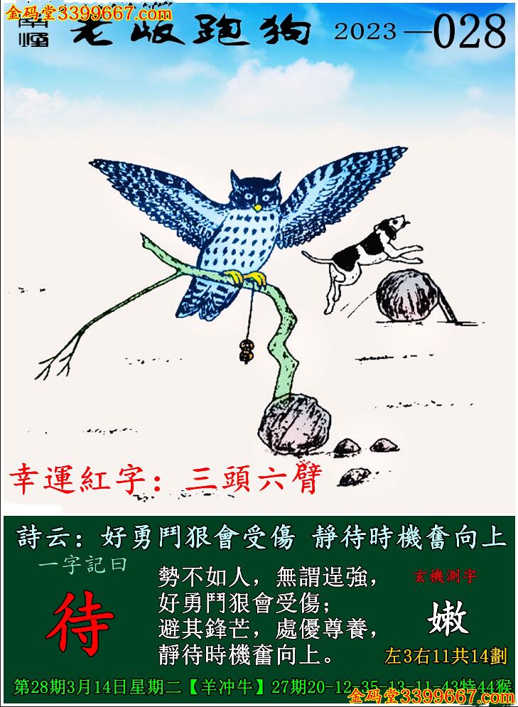 主题 : 028期老版跑狗一字記之曰:【待】 玄機測字:《嫩》