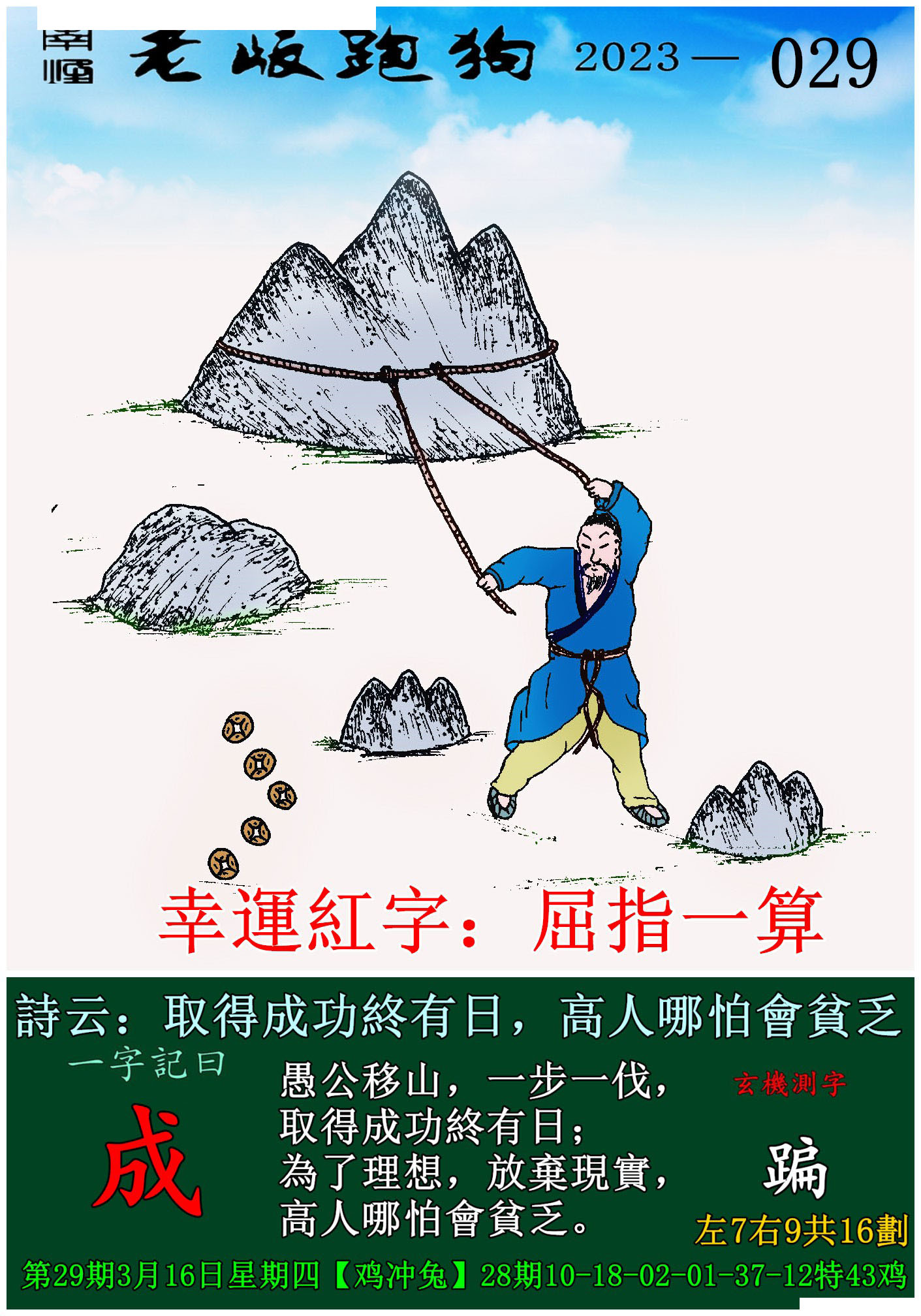 029期老版跑狗一字記之曰:【成】