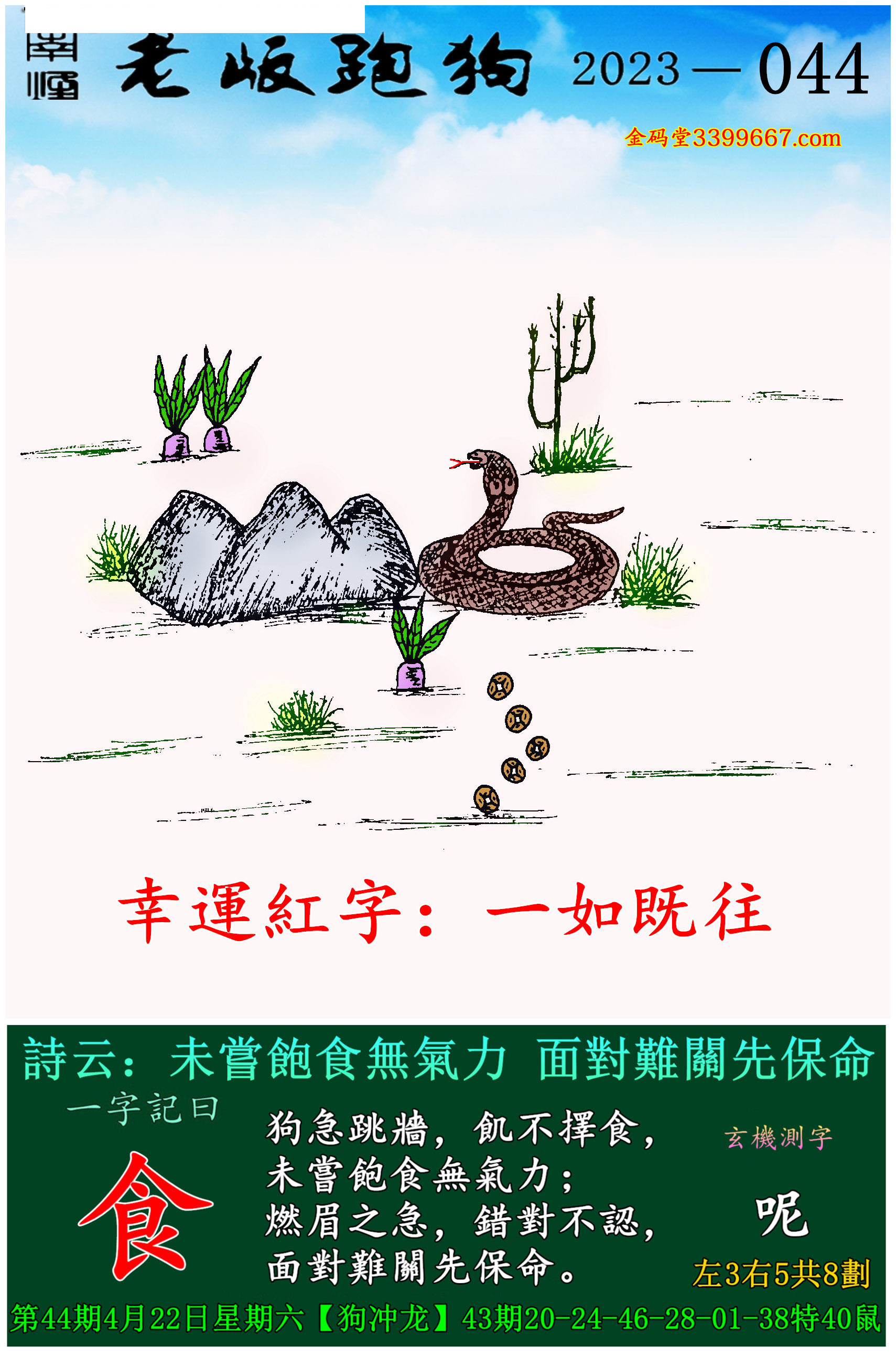 044期老版跑狗一字記之曰:【食】