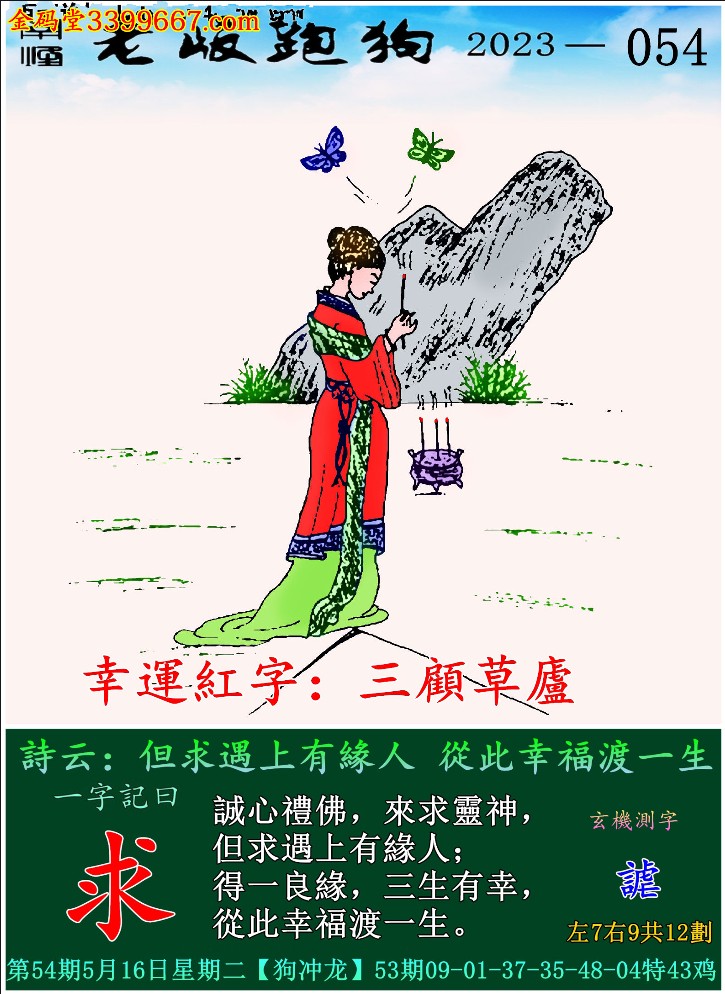 054期老版跑狗一字記之曰:【求】