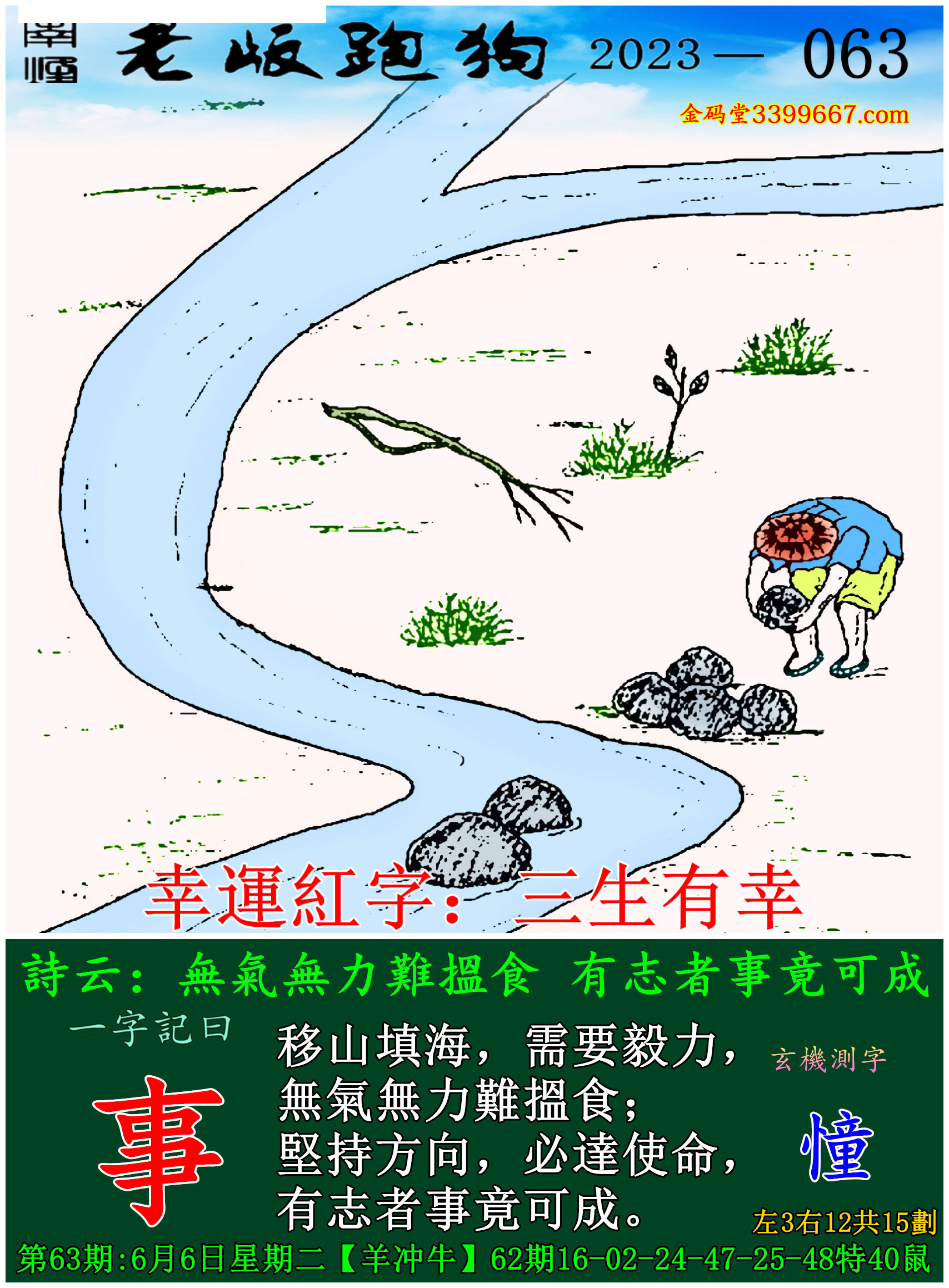 主题 : 063期老版跑狗一字記之曰:【事】玄機測字:《憧》