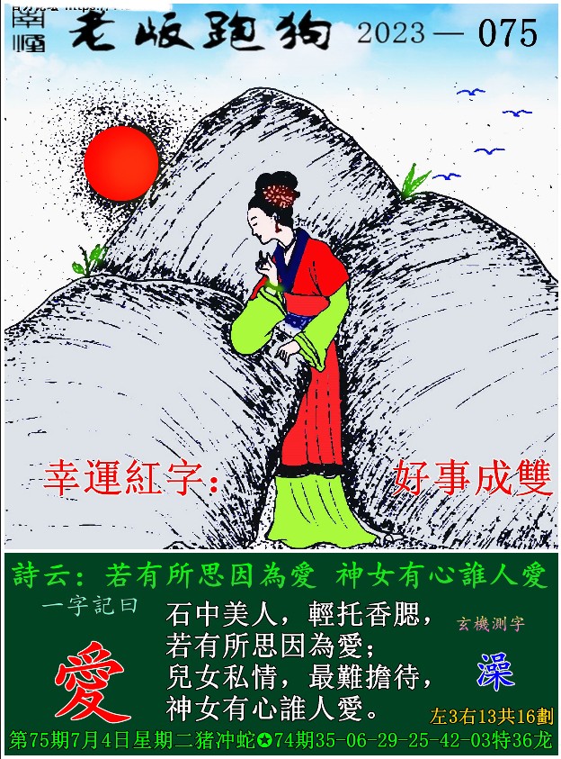 075期老版跑狗一字記之曰:【愛】 玄機測字:《澡》