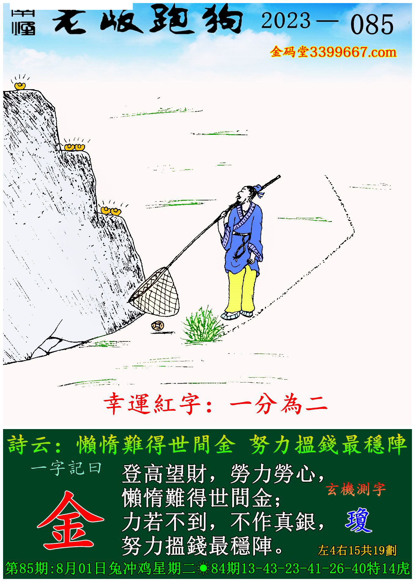 085期老版跑狗一字記之曰:【金】