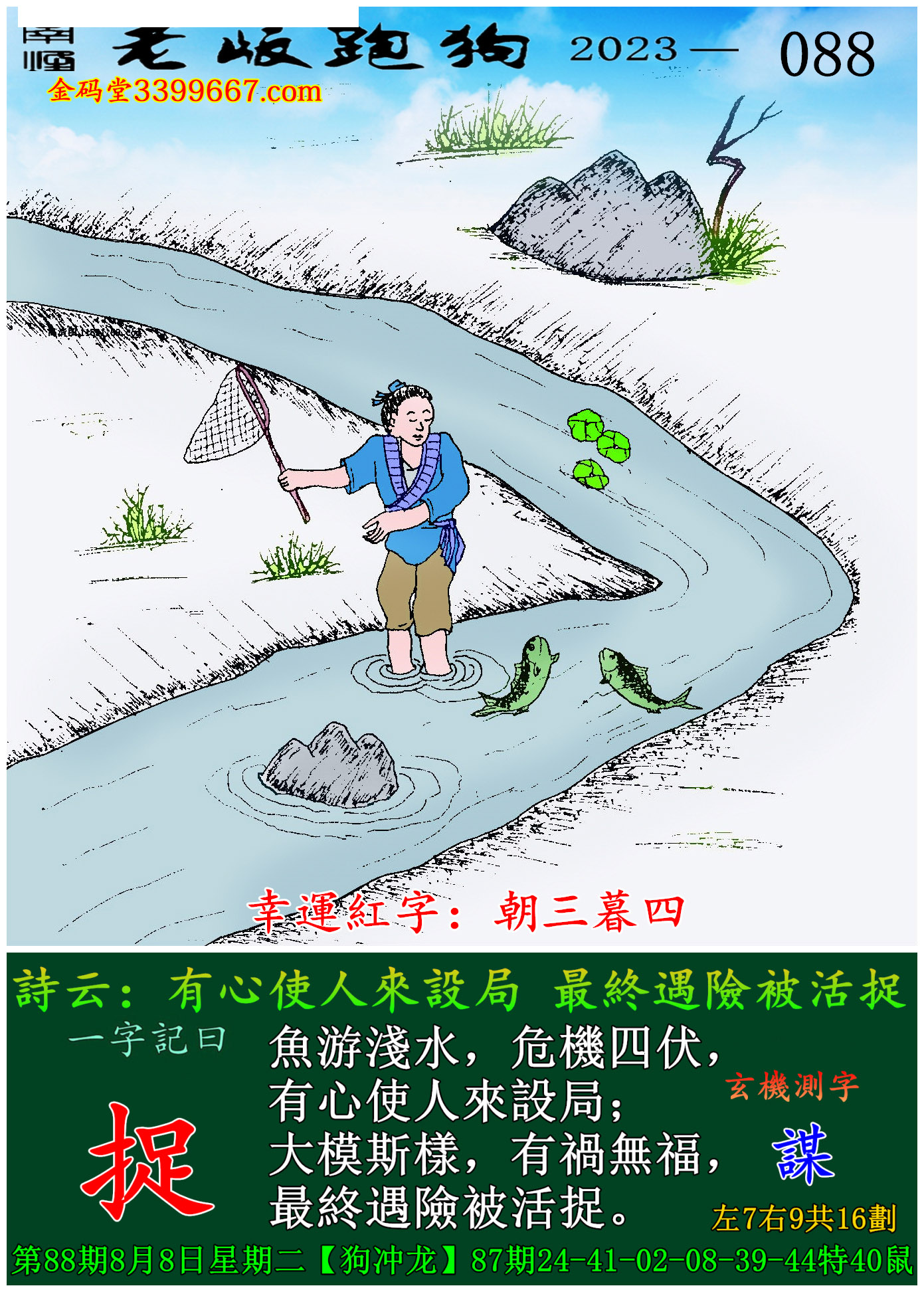 088期老版跑狗一字記之曰:【捉】玄機測字:《謀》