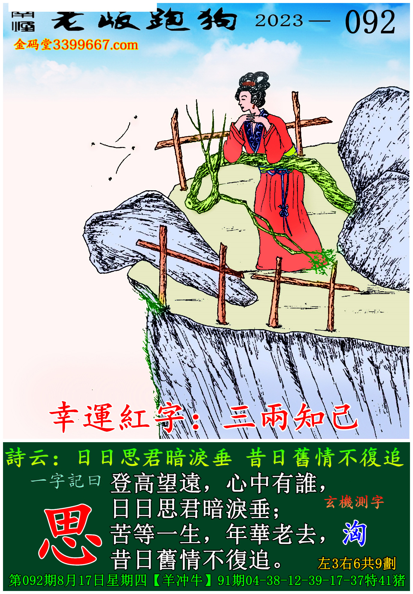092期老版跑狗一字記之曰:【思】