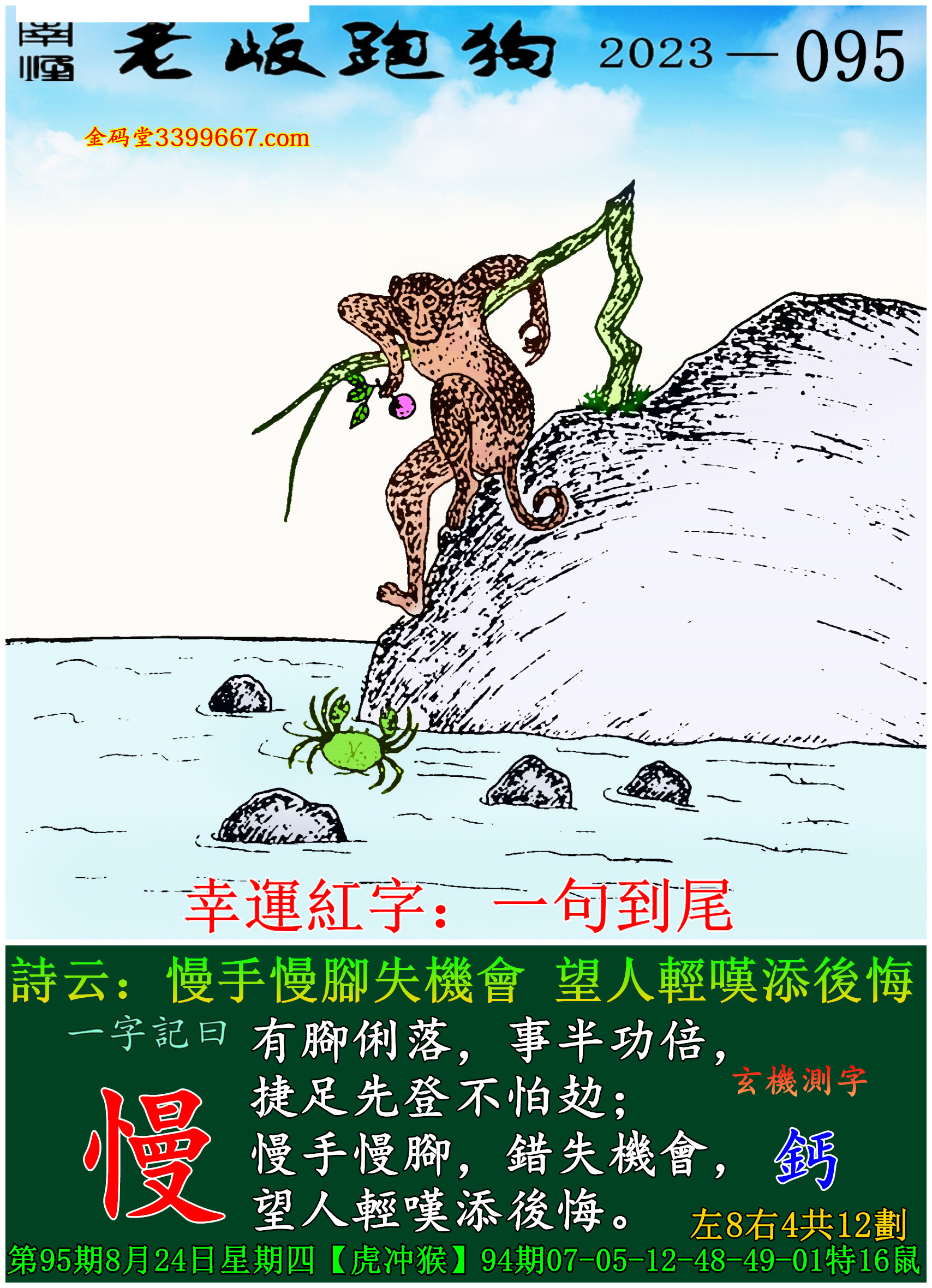 095期老版跑狗一字記之曰:【慢】玄機測字:《鈣》