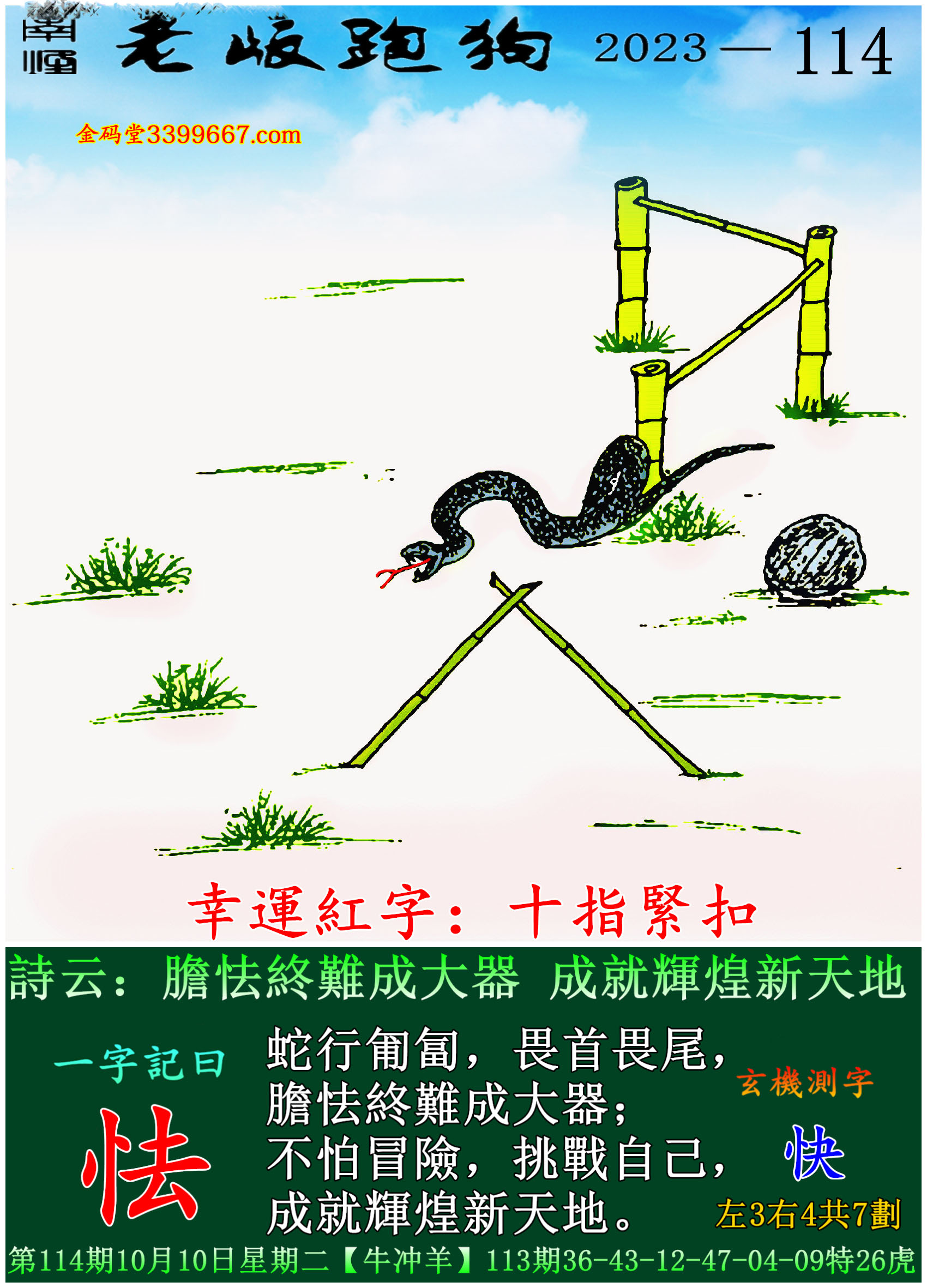 主题 : 114期老版跑狗一字記之曰:【怯】玄機測字:《快》
