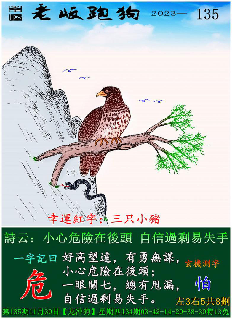 主题 : 135期老版跑狗一字記之曰:【危】 玄機測字:《怕》