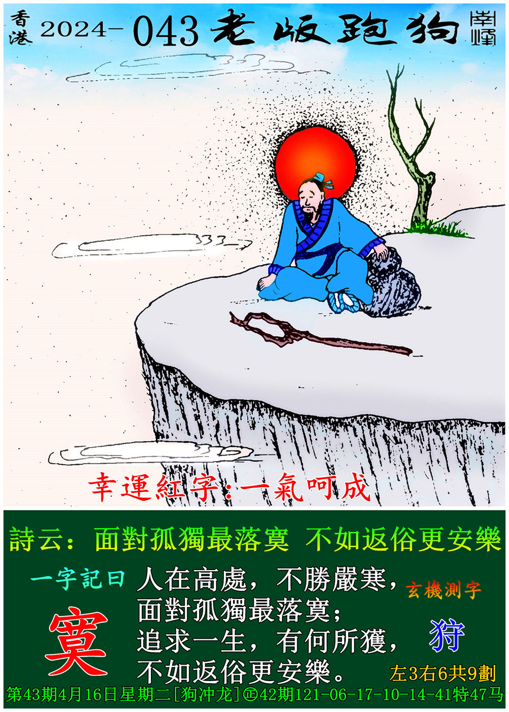 043期老版跑狗一字記之曰:【寞】