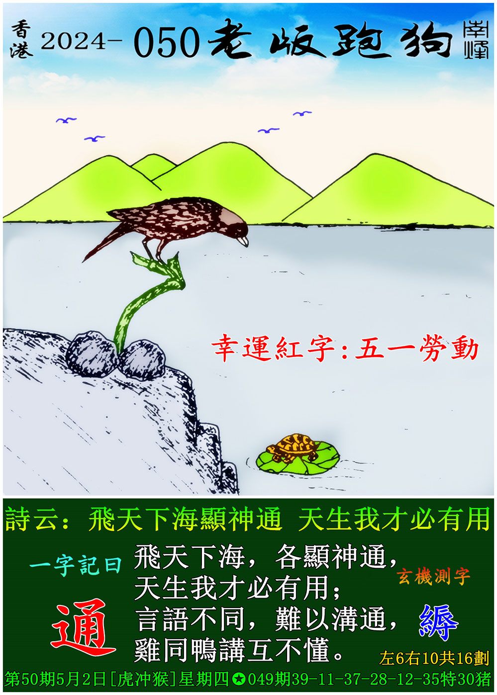 050期老版跑狗一字記之曰:【通】 玄機測字:《縟》