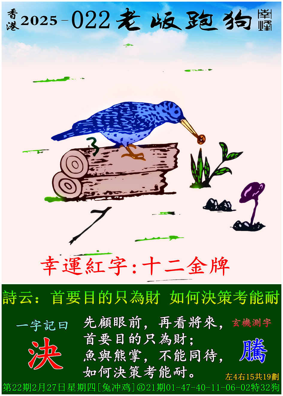 主题 : 022期老版跑狗一字記之曰:【決】 玄機測字:《騰》