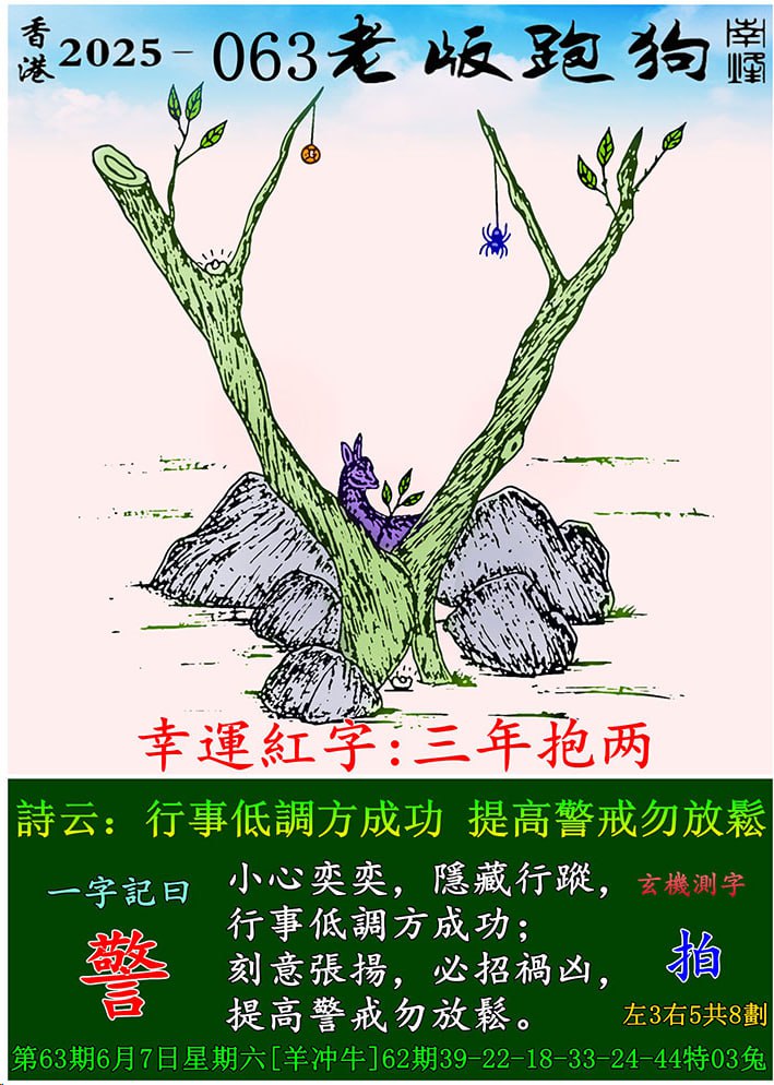 主题 : 063期老版跑狗一字記之曰:【警】 玄機測字:《拍》
