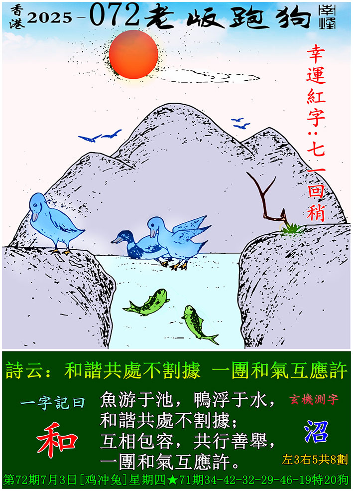 072期老版跑狗一字記之曰:【和】 玄機測字:《沼》