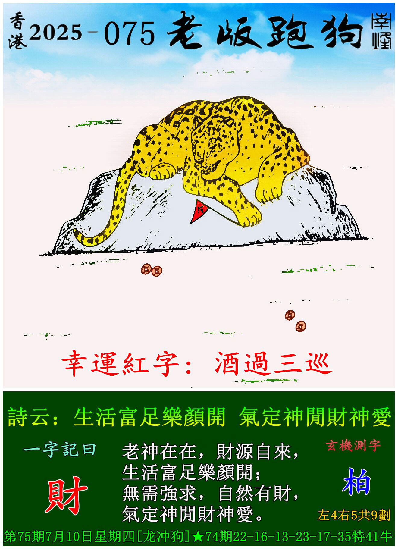 075期老版跑狗一字記之曰:【財】