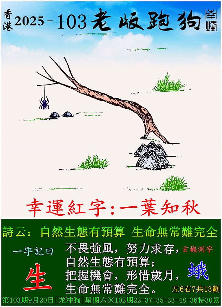 103期老版跑狗一字記之曰:【生】