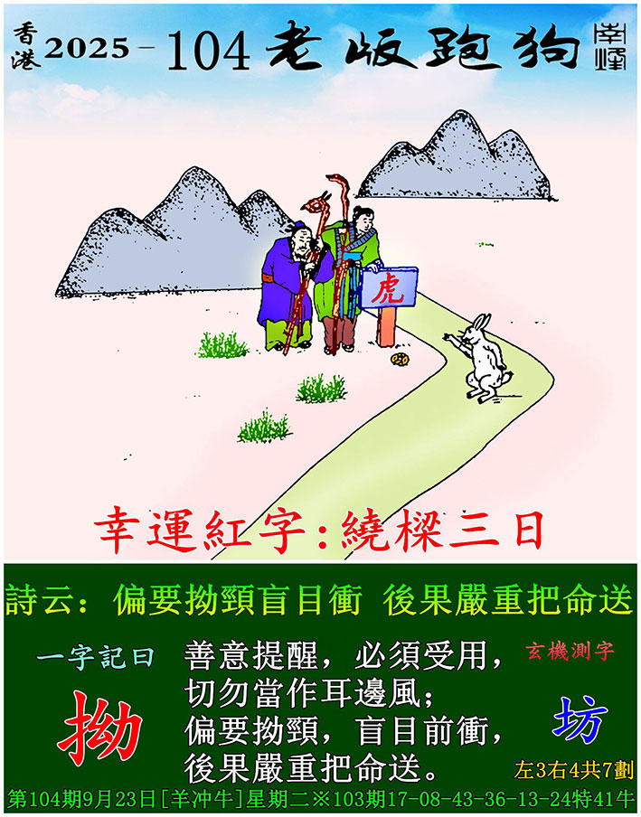 主题 : 104期老版跑狗一字記之曰:【拗】 玄機測字:《坊》