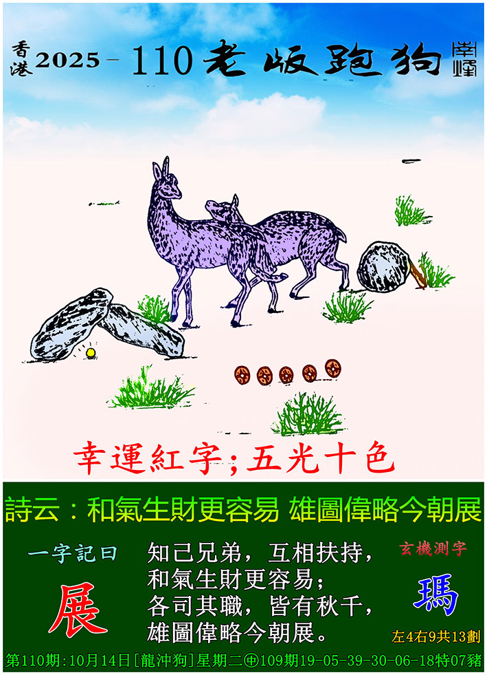 主题 : 110期老版跑狗一字記之曰:【展】 玄機測字:《瑪》