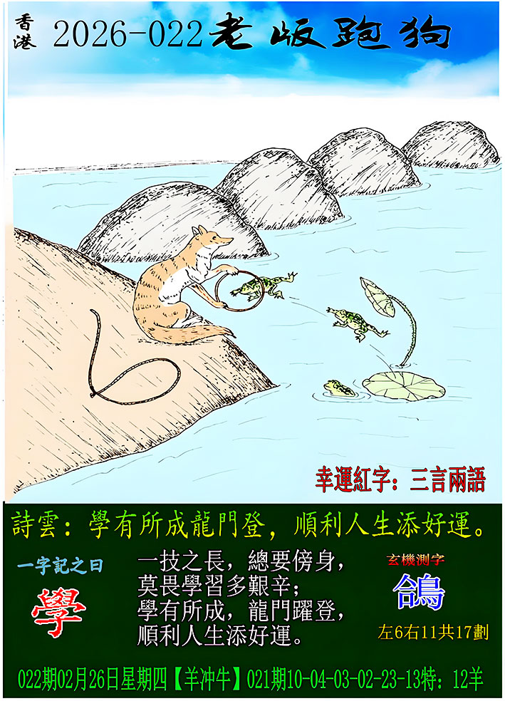 022期老版跑狗一字記之曰:【學】