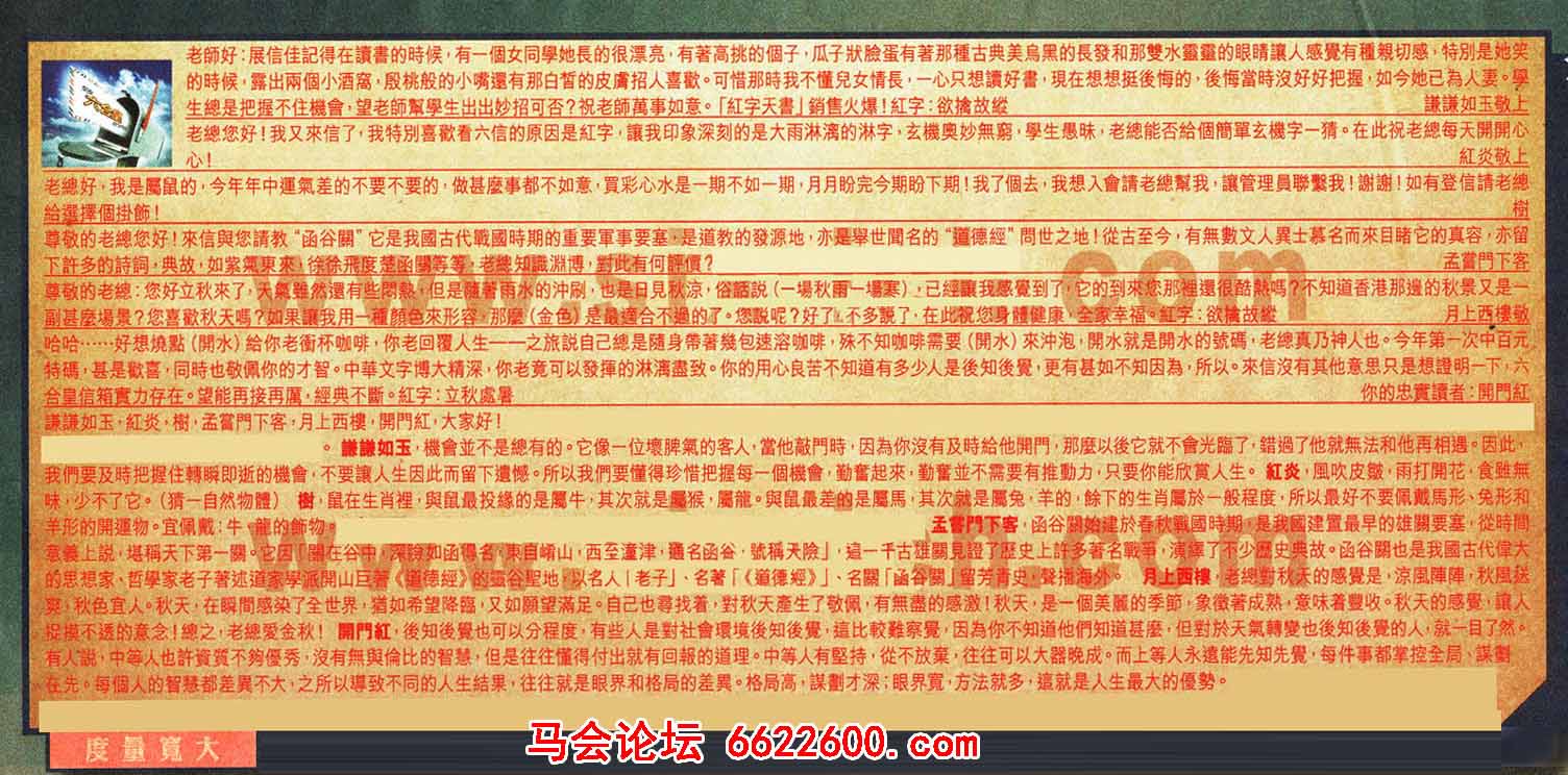 【2】老總您好!我又来信了,我特别喜歡看六信的原因是紅字,讓我印象深刻的是大雨淋漓的淋字,玄機奥妙無窮,學生愚昧,老總能否給個簡單玄機字一猜。在此祝老德每天開開心心! --- 紅炎敬上