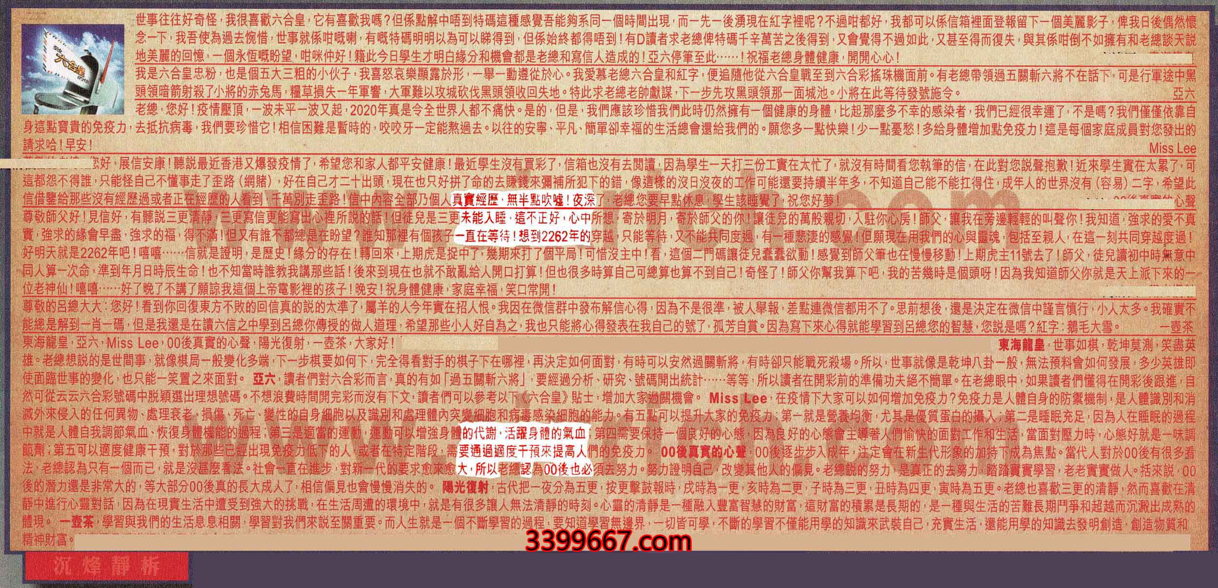 【4】.尊敬的老總:您好,展信安康!聽說最近香港又爆發疫情了,希望您和家人都平安健康!最近學生沒有買彩了,信箱也沒有去閱讀,因為學生一天打三份工實在太忙了,就沒有時間看您執筆的信,在此對您說聲抱歉!近來學生實在太累了,可這都怨不得誰只能怪自己不懂事走了歪路(網賭),好在自己才二十出頭,現在也只好拼了命的去賺錢來彌補所犯下的錯,像這樣的沒日沒夜的工作可能還要持續半年多,不知道自己能不能扛得住,成年人的世界沒有(容易)二字,希望此信借鑒給那些沒有經歷過或者正在經歷的人看到,千萬別走歪路!信中内容全部乃個人真實經歷,無半點吹噓!夜深了,老總您要早點休息,學生該睡覺了,祝您好萝!  00後真實的心聲