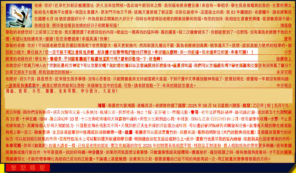 第065期 《六合皇信箱文字版》10000%正確!!!